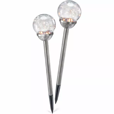 Le module solaire, discrètement intégré à lintérieur de la vraie sphère en verre, charge la batterie au soleil. À la tombée de la nuit, les lumières sallument automatiquement et séteignent à nouveau lorsque la batterie est vide ou à laube.