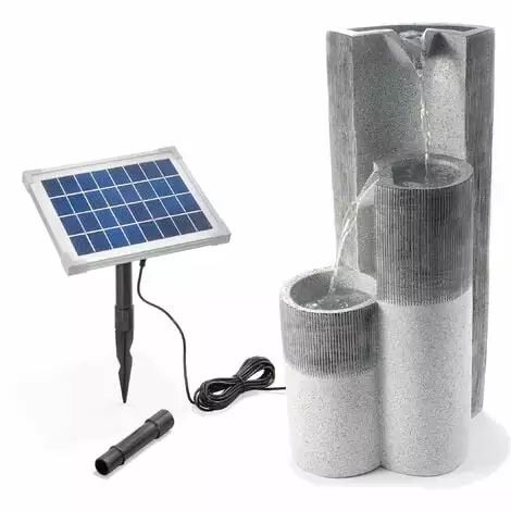 La pompe, qui fonctionne à lénergie solaire moderne, vous permet dinstaller la fontaine solaire de jardin Smart Fountain nimporte où dans le jardin. Vous navez pas à vous soucier dune éventuelle connexion électrique. Avec ses trois stèles en gris frais, la fontaine solaire de jardin Smart Fountain apporte lénergie en mouvement de leau dans votre jardin. Leau coule comme une cascade de la stèle supérieure sur les deux suivantes et est pompée à partir de la stèle inférieure.