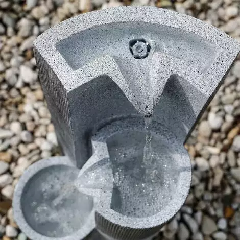 La fontaine solaire de jardin Smart Fountain est en polyrésine gris clair, un plastique de haute qualité et résistant aux intempéries. Cela ressemble à une pierre dure, mais en beaucoup plus léger. Dans votre jardin, la fontaine de jardin solaire attire lattention, mais reste en même temps discrètement en arrière-plan. Avec lui, vous pouvez obtenir la fascination de leau qui coule. Leau donne de la force, apaise et détend après une journée stressante et crée une oasis de repos.