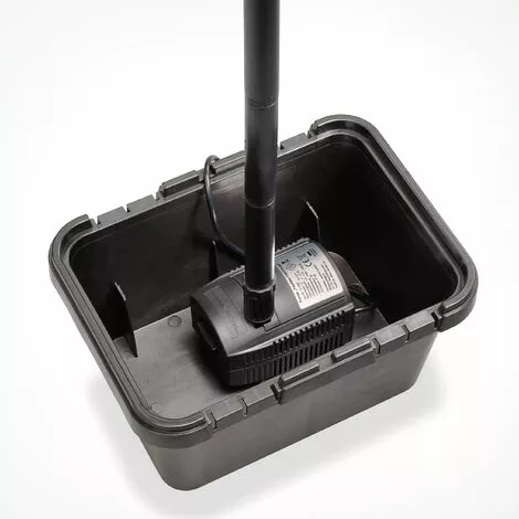 Une pompe darrosage économe en énergie avec régulateur de débit et protection contre la marche à sec fonctionne dans le boîtier de filtre de ce kit. Il transporte non seulement leau à travers les couches filtrantes, mais crée également une pièce deau décorative – éventuellement une cloche à eau impressionnante, une fontaine jusquà 110 cm de hauteur ou une colonne deau vive avec un débit dair élevé.