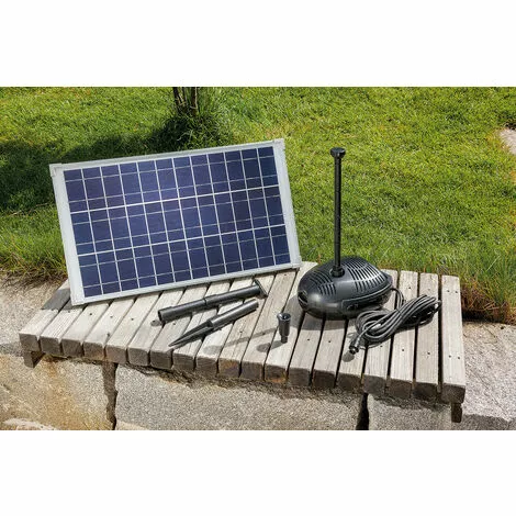 Dès que le soleil brille sur le module solaire, la pompe commence à fonctionner et vous offre un jeu deau gratuit. Système prêt à brancher avec pompe sans balais de haute qualité, avec protection contre la marche à sec et grand boîtier pour une bonne stabilité dans le bassin de jardin. Le débit de la pompe est réglable et différentes fontaines peuvent être générées avec les 4 tuyaux montants inclus et 2 arroseurs différents (fontaine à 3 étages et cloche à eau). Prêt à brancher, installation en quelques minutes !