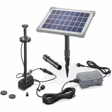 - Kit complet prêt à lemploi composé dun module solaire, dune pompe darrosage avec anneau LED et de quatre buses darrosage