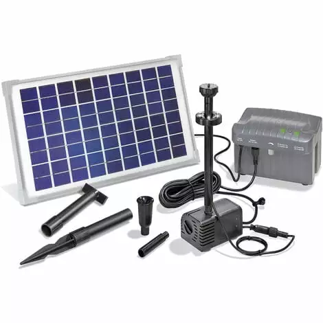 Le systĂšme de pompe peut ĂȘtre utilisĂ© dans un Ă©tang ou pour fournir de lÂeau Ă une pierre source. Le module solaire gĂ©nĂšre suffisamment dÂĂ©nergie en plein soleil en Ă©tĂ© pour faire fonctionner la pompe avec de la lumiĂšre et pour charger la batterie en mĂȘme temps. La tension et donc la puissance de la pompe peuvent ĂȘtre rĂ©gulĂ©es entre 12 et 24 V via un contrĂŽleur intĂ©grĂ© dans le boĂźtier de batterie. Pompe fermĂ©e sans balais de haute qualitĂ© avec protection contre la marche Ă sec et Ă©clairage LED longue durĂ©e. DiffĂ©rents modĂšles de pulvĂ©risation peuvent ĂȘtre créés avec les 4 tuyaux montants et 2 arroseurs diffĂ©rents (arroseur Ă 3 Ă©tages et cloche Ă eau) inclus.