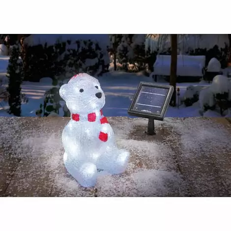 Placé dans le jardin, lours luisant fait une jolie silhouette jour et nuit. Pendant la journée, la lumière du jour et la lumière du soleil sont converties en énergie électrique et la batterie intégrée est chargée. La nuit, la guirlande lumineuse intégrée sallume automatiquement et assure un éclairage optimal de la figurine. Un module solaire aux dimensions généreuses permet une bonne charge même les jours avec peu de soleil.